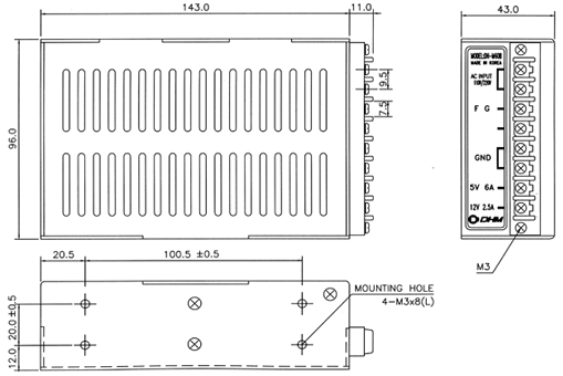 | OUTPUT PROTECTIONS | OVER CURRENT PROTECTION | 130~180% OF RATED IOUT(AUTOMATIC RECOVERY) | |||||||